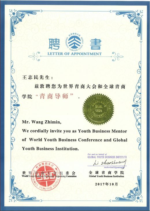(全球化与中国现代化问题研究所供稿)对外经济贸易大学全球化与中国现代化问题研究所所长王志民教授被聘为世界青商大会和全球青商学院青商导师。